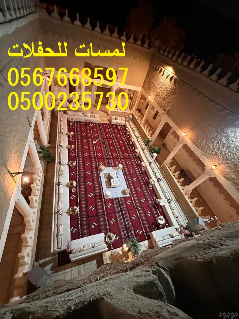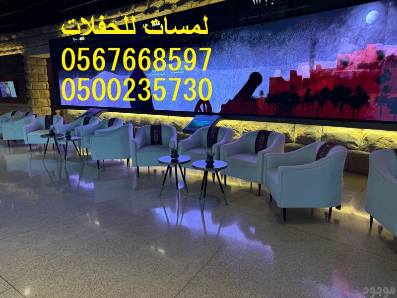 ?مؤسسة لمسات للحفلات تقدم: تجهيز حفلات,تزين قاعات افراح,ايجار جميع انواع المجالس, جلسات ارضيه تاجير طاولات كوكتيل متوفرة بالأنواع : مضيئة , تلبيسة , حديد مع خشب , بللور , تاجير كنب جلد , تاجيرمكيفات خيام متوسطةللايجار, خيام كبيرةللايجار, ايجار كنب ملكي خدمات تنظيم الاحتفالات ,كنب جلد ابيض كراسي فندقية , طاولات طعام وبوفيه , طاولات اجتماعات تزين قاعات,ايجار جميع انواع المجالس, جلسات شالكي الوان مختلفه ايجار خيام,كنب شعبي,ايجار كنب ملكي, ايجار تراثيات تاجير دفايات فيصليه وعاديه وتاجير خيام شفافه وجلسات مودرن تنظيم وتأجير لوازم المناسبات والاحتفالات العامه والخاصه اختار ما يناسبك من الصور للتواصل معنا على الارقام التالية: 8597 766 056 730 235 00 05