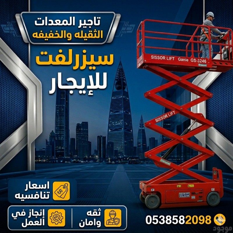 سيزرلفت مان لفت جي سي بي تليهاندر كرينات موبايل للايجار رافعات مقصيه للايجار سقالات كهربائية للايجار